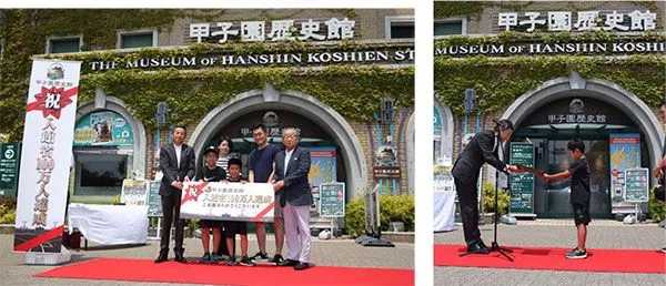 100万人目のお客さまには、『甲子園歴史館入館1年間フリーパス』や『100万人目の証明書』などの記念品を贈呈しました。