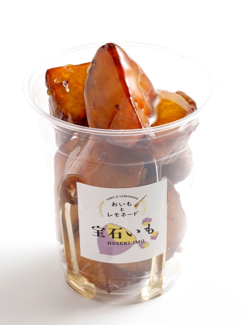 五郎島金時の大学いもに『あめの俵屋(本店:金沢市小橋町)』の米飴をベースにした蜜を「追い蜜」してかける化学調味料無添加の『宝石いも』。「地域との対話」から生まれた『おいもとレモネード』の人気商品です。