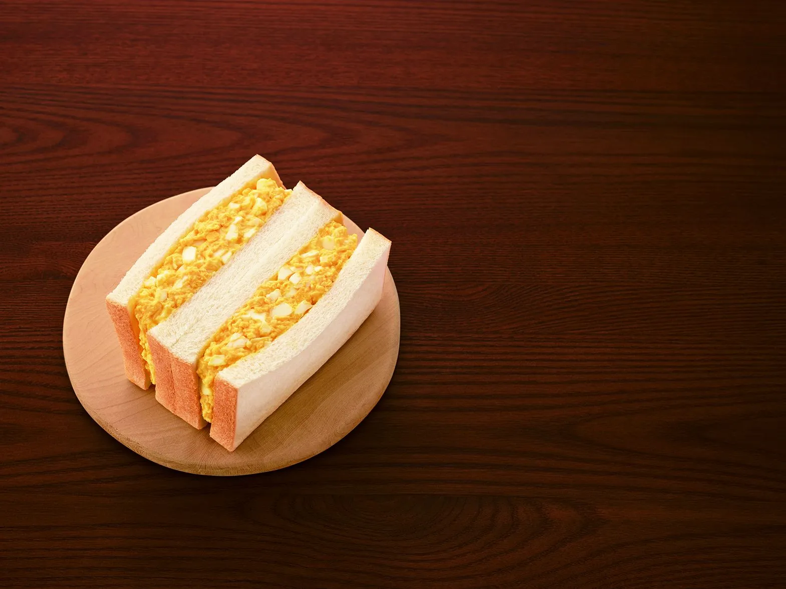 具材量150gのボリューム感あるたまごサンドです。たまごそのものの風味を生かし、サンドイッチとして食べやすいなめらかさのバランスにこだわっています。コクのある黄身の味わいとごろっとした白身の食感が感じられます。