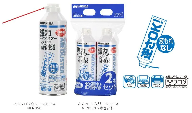 ハクバ写真産業株式会社(本社:東京都墨田区)は、カメラやパソコン、プリンターなどのメンテナンスに活躍するノンフロンタイプのエアダスター「ノンフロンクリーンエース NFN350」を発売いたします。