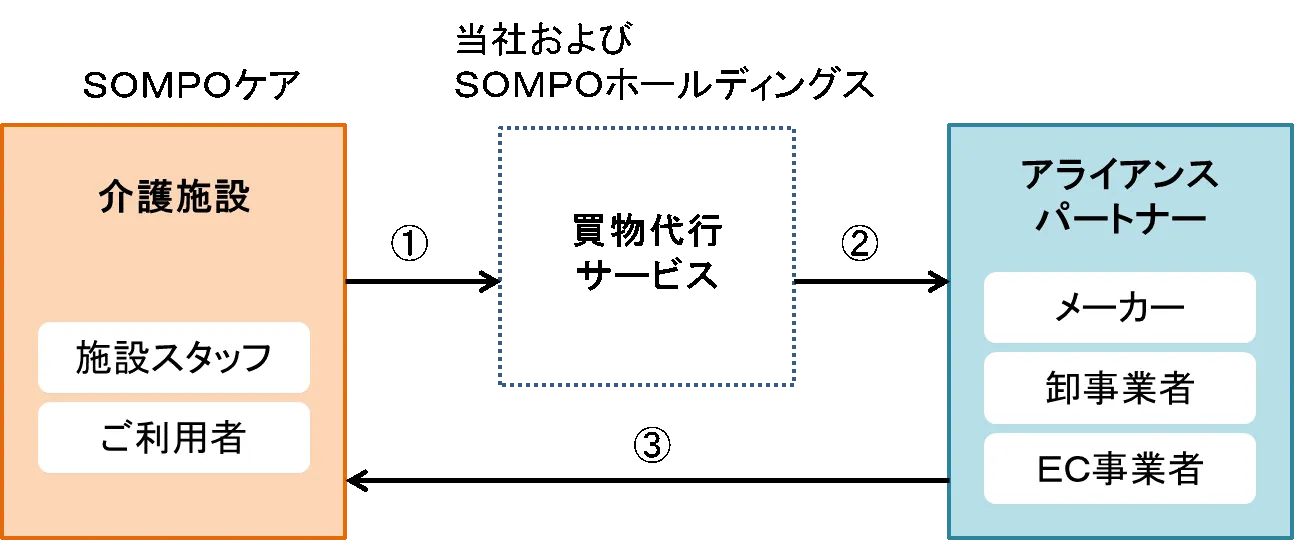 (3)商品は、アライアンスパートナーから介護施設へ発送されます。