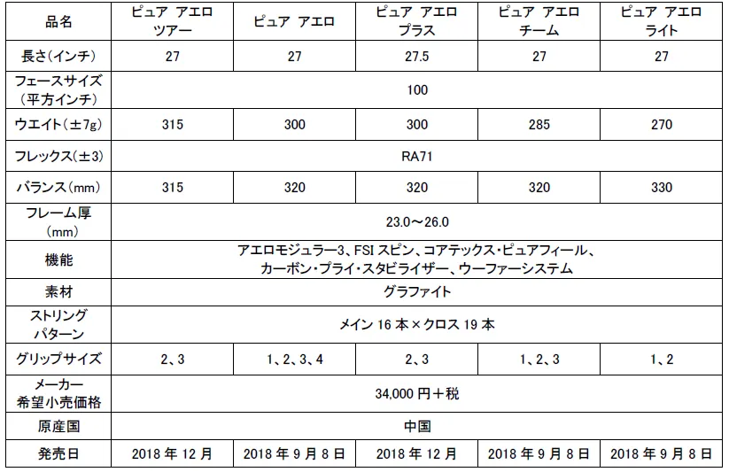 住友ゴムグループの(株)ダンロップスポーツマーケティング(本社:東京、社長:尾島 祐輔)は、日本での販売総代理店契約をしているバボラ VS社 ( Babolat VS、 本社:フランス、社長:エリック・バボラ Eric Babolat)の新製品テニスラケット「ピュア アエロ」5機種を、世界に先駆けて9月から日本で先行発売します。メーカー希望小売価格は、全機種34,000円+税です。
