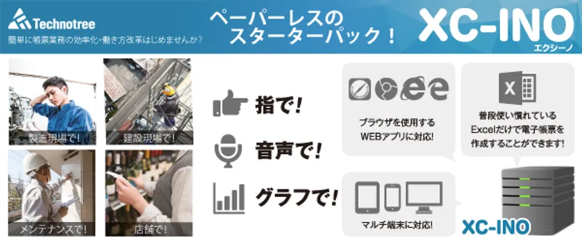 株式会社テクノツリー(本社:兵庫県明石市、代表取締役:木下 武雄)は、2018年10月に「簡単にペーパーレスを始めたい」「製造現場で記録しているデータを活用したい」といった現場の紙帳票の課題を解決できる電子帳票ソリューション「XC-INO(エクシーノ)」をリリースいたします。