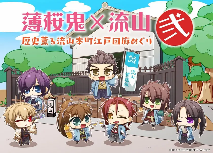 流鉄沿線活性化実行委員会(流鉄株式会社、流山市、松戸市、流山・松戸市両観光協会、流山・松戸両商工会議所)では、平成30年8月31日(金)から、アイディアファクトリー株式会社(代表取締役社長:佐藤嘉晃)が持つ、新選組をテーマとした女性向け恋愛アドベンチャーゲーム「薄桜鬼(はくおうき)」とコラボレーションし、流鉄流山線の車両のラッピングや、薄桜鬼に登場する7人のキャラクターの切り絵行灯の設置、流山本町の6店舗での特製コースター付きメニューの販売、限定物販などのコラボレーション企画第二弾を実施します。