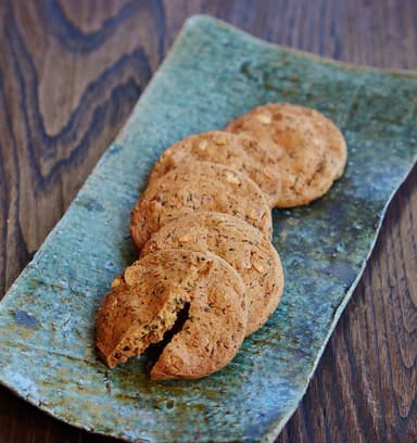 丁寧に煎った丹波産黒豆を生地に混ぜ、香ばしく焼き上げたサクサク食感のサブレです。