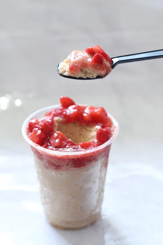 ゆっくりと水から凍り始める従来のかき氷は、ソースのエキスと氷がどうしても分離してしまうことから、溶けると水っぽくなってしまいがち。