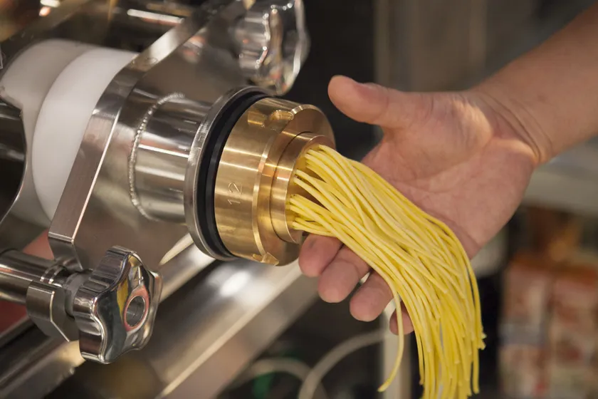 小麦粉の配合や質にこだわりホエイを混ぜ込み、真空状態にすることで生パスタ特有のモチモチ感と乾麺の特徴である食感や喉越しの良い自家製パスタの開発に成功いたしました。