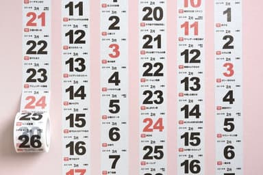 しかし、大阪の印刷会社の技術で、最初から終わりまで全て違う柄のマスキングテープが作れるようになりました。それにより、元旦から大晦日までの日めくりカレンダーが作れるようになりました。