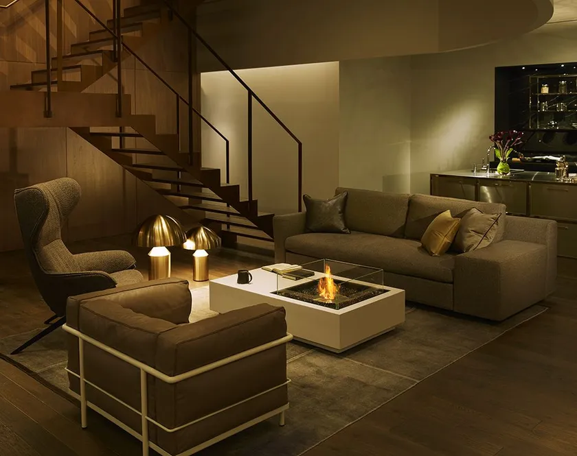 暖房機器としては勿論ですが、バイオエタノールの炎は温度が上がるほどオレンジ色に輝くため、観賞用・インテリアとして炎を取り入れたい方に最適です。「エコスマートファイヤー」のデザインコンセプトは“炎の美しさを最大限に活かす”というもの。炎の周りをガラス張りにすることでその揺らめきを眺めやすくなるよう設計されています。