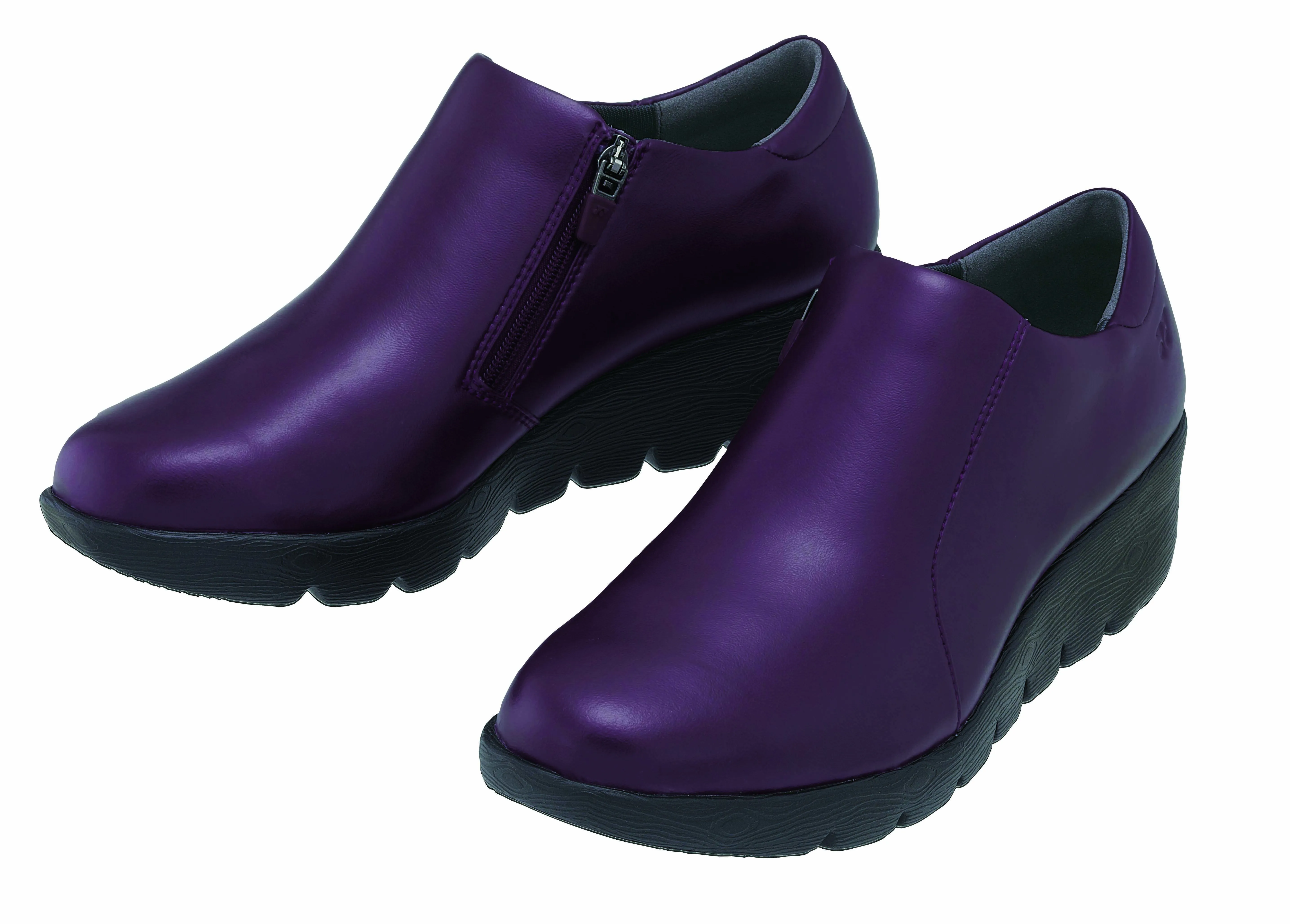 パワークッションプラスを厚底ソールの踏み付け部とかかと部に搭載し、衝撃吸収性は1.7倍※4を達成。厚底ながら軽くて弾むようなクッション感を実現し、ひざを優しくサポートします。そして高さ5cmのヒールは、やや外側に張り出したソール設計により、外側への足のぐらつきを防ぎ、安定した歩行が可能になります。