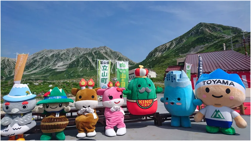*富山県内観光地と大町市のブースが勢ぞろいし魅力を発信。ご当地キャラも登場。