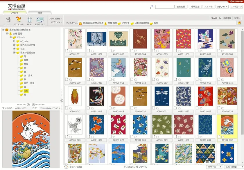 東洋美術印刷株式会社(所在地:東京都千代田区飯田橋4-6-2、代表取締役社長:山本 久喜)は、2,200点以上の伝統文様のデザイン素材データが、出典や意味など付帯情報と合わせて分類・集積されており、検索・ダウンロードができるサービス「文様百趣アーカイブス」を2018年8月6日(月)に開始いたします。