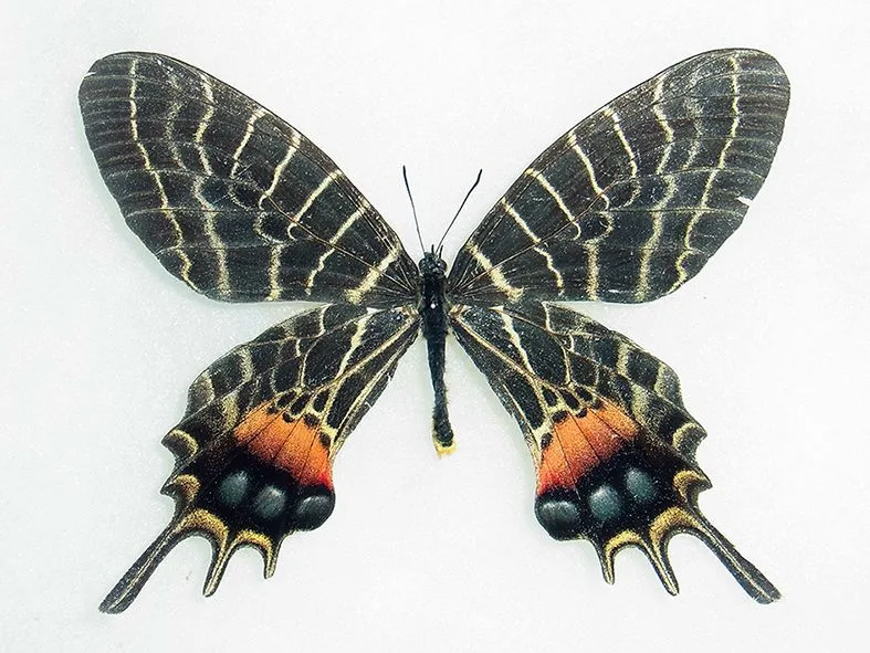 昆虫がいつ頃地球に出現したかを学べる生物進化表や昆虫の化石のほか、日本とブータンの友好の証として贈呈された幻の大蝶「ブータンシボリアゲハ」をはじめ滅多に見ることのできない貴重な昆虫の標本を展示します。