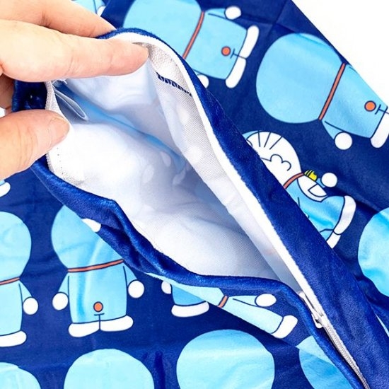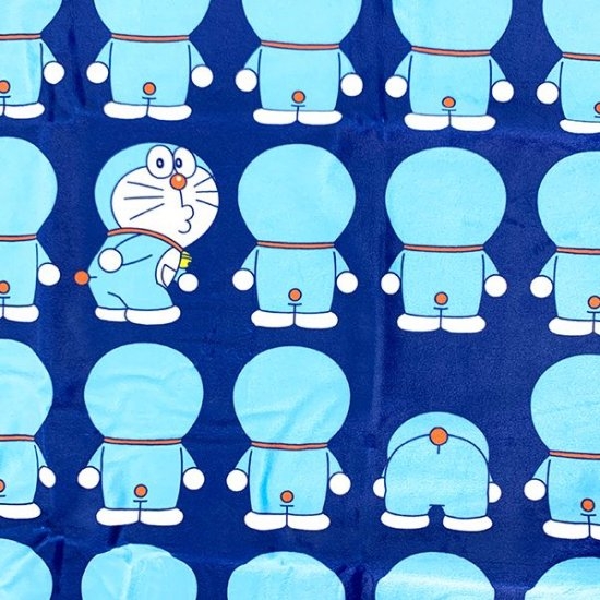 ドラえもんは、いろんな後ろ姿のデザインをご用意しました。ネイビーカラーに青いドラえもんがとっても映えていますね。みんな立っているかと思いきや振り向いていたり、下を覗いていたり、頭を触っていたり自由なドラえもんがたくさん詰まっています。眠る前にかわいくてキュンとするそんな枕カバーでございます。