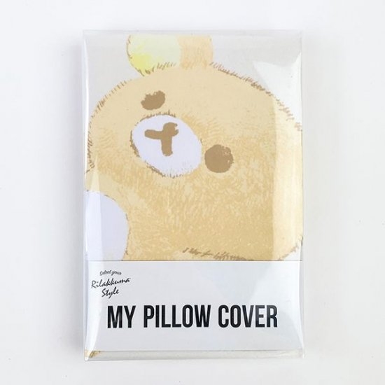 こちらはリラックマデザイン。ベージュカラーのシンプルな背景にリラックマがのびのびとくつろいでいます。何を考えているのかな?リラックマ単体にロゴデザインのシンプルな枕カバーです♪これなら大人も使いやすいですね。