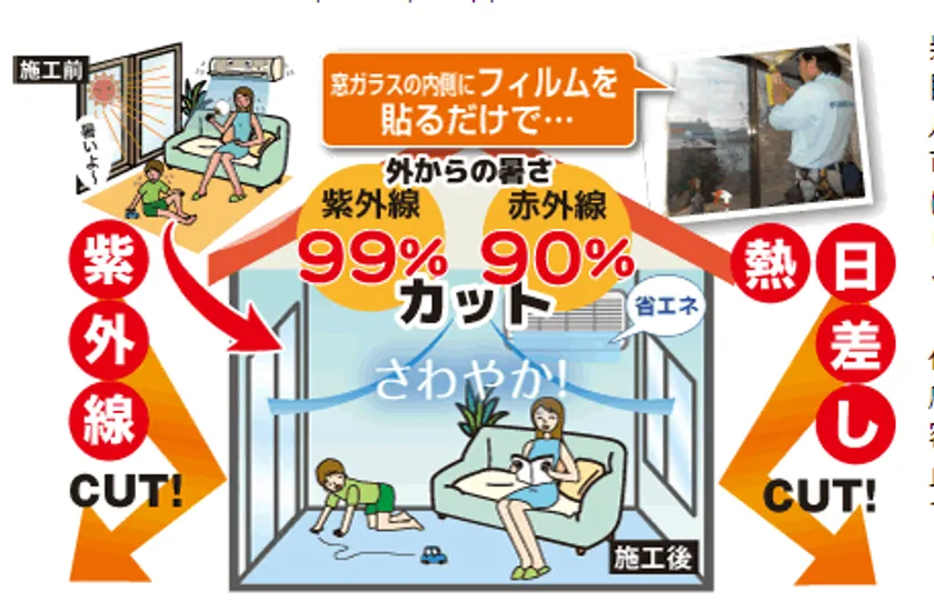 今年の猛暑の熱中症対策に涼しく最適! 紫外線を99%、赤外線を90%カットする 窓ガラス反射フィルムを開発!