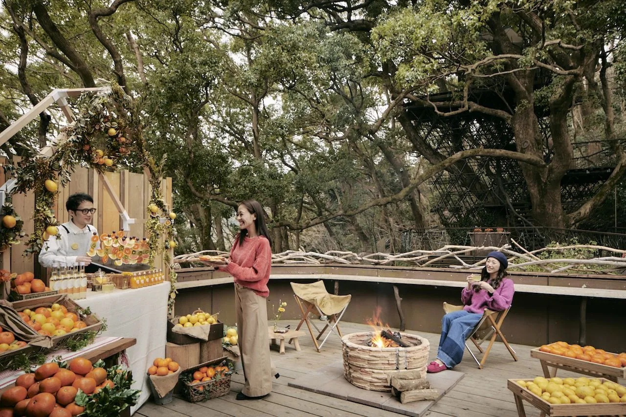 熱海の絶景と温泉に浸るリゾートホテル「星野リゾート リゾナーレ熱海」では、2018年11月1日~11月30日の期間、ホテルに隣接する屋外施設「森の空中基地くすくす(以下、くすくす)」にて、「フルーツバーベキュー」を開催します。ホテルから徒歩1分で到着する、樹齢300年のくすのきを臨む焚き火デッキで、熱海を含む伊豆地域で生産が盛んな柑橘を中心とした旬のフルーツをバーベキュースタイルで味わえます。秋風が心地よいシーズンに、面倒な準備や後片付けに追われることなく、手軽にアウトドアを楽しみたい方におすすめです。
