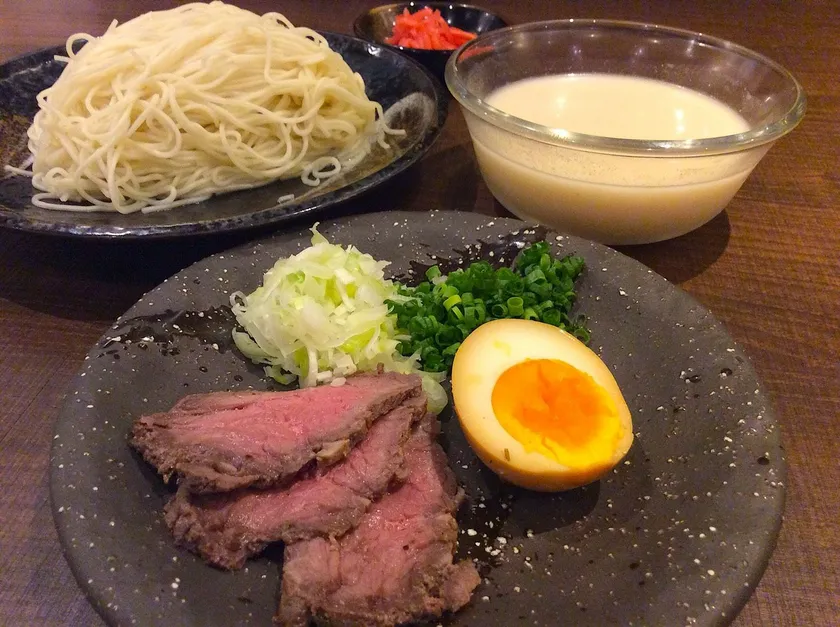 焼肉店ならではのこだわりの牛骨を長時間じっくり煮込んだコムタンスープをベースに、かつお節などふんだんに和風だしをブレンドした特製スープを使用したつけ麺はあっさりとした口当たりながら、和風だしのコクが口の中に残ります。食欲がわきづらい季節におすすめの一品です。