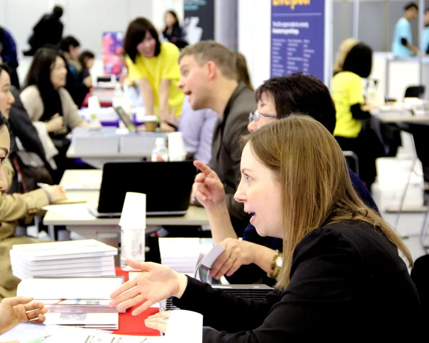 学校ブースでの個別相談、留学セミナー、留学相談、英語学習相談