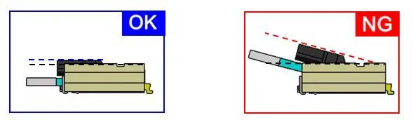 (2)正しく挿入されていない場合、アクチュエータでロックができない。
