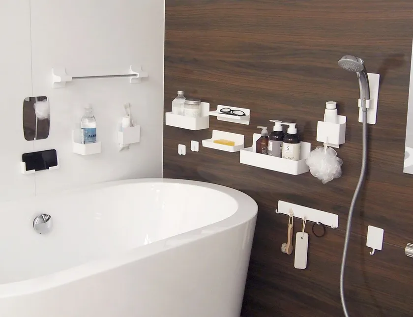 まだまだ知られていない事実、《一般的なユニットバスの壁面は内部に鋼板を使用しており、磁石がくっつくものが多い》ことを利用した浴室の収納用品「磁着」シリーズは、ユニットバスの壁面に磁石でくっつけて使用できることが特長です。