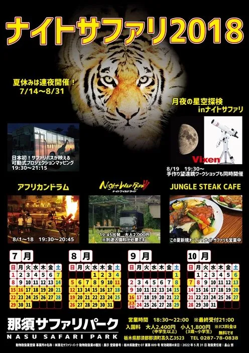 那須サファリパークで2018年8月19日(日)に開催の 『ナイトサファリ&月夜の星空探検』に協力