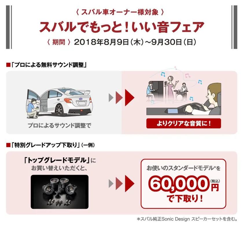 ソニックデザイン、音質向上をサポートする2つの特典を スバル車オーナーに向けて提供する 「スバルでもっと!いい音フェア」を開催