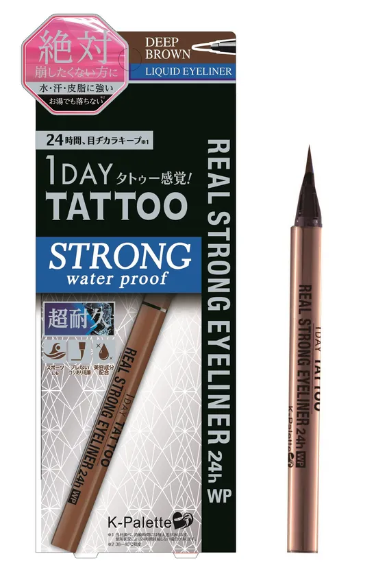 「1DAY TATTOO」シリーズより発売中の「K-パレット リアルストロングアイライナー24hWP」についに新色「ディープブラウン」が登場です。優しい印象を与える肌なじみの良いブラウンで、自然に目元を強調します。超耐久成分を高配合したこだわりの独自処方で、スポーツ・海やプール・アクティビティなど、どんなシーンでも描いたラインが崩れずにキープ(※1)します。
