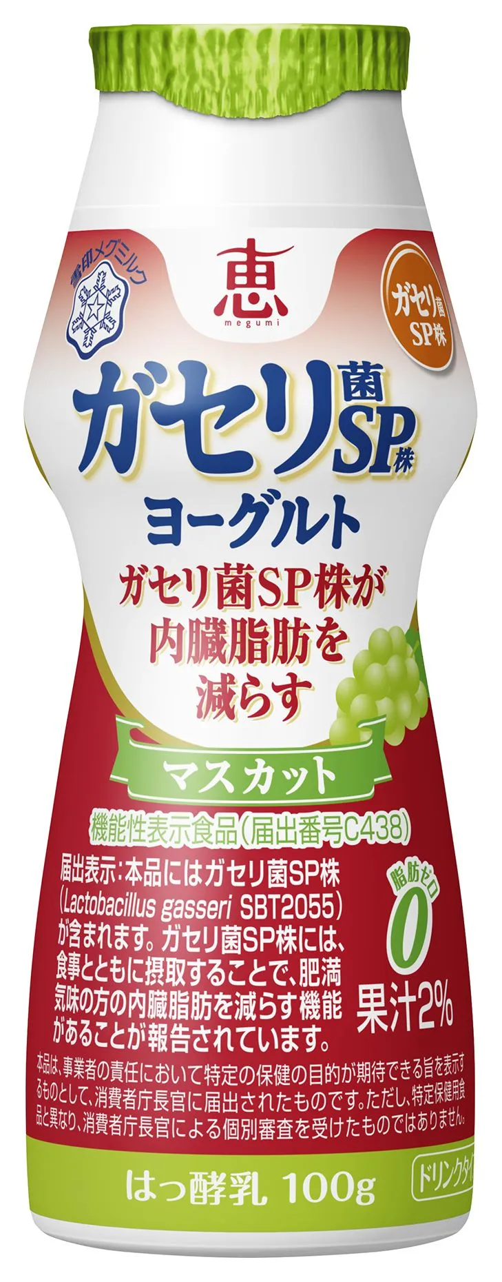 多くの方に支持をいただいている「ガセリ菌SP株が内臓脂肪を減らす」機能性表示食品の『恵 megumi ガセリ菌SP株ヨーグルト ドリンクタイプ』に3品目の新フレーバーとして「マスカット」が登場します。