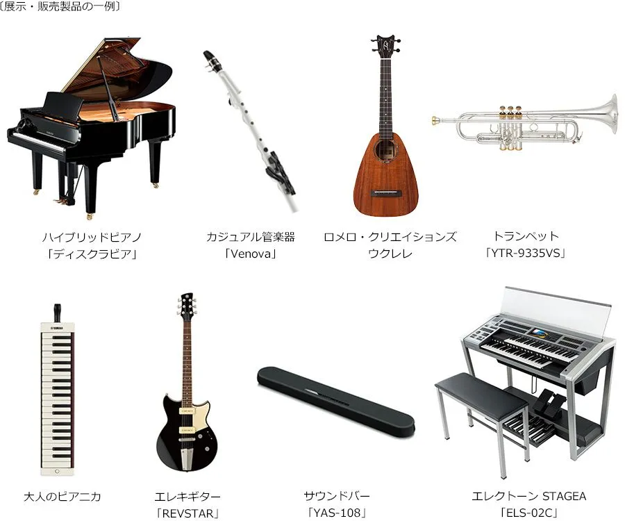 ハイブリッドピアノやエレクトーンといった鍵盤楽器や、2017年度の「グッドデザイン大賞」を受賞した「Venova(ヴェノーヴァ)」をはじめとする各種管楽器、グラミー賞受賞アーティスト ダニエル・ホーが監修するロメロ・クリエイションズのウクレレ、サウンドバーの大ヒットモデル「YAS-107」の後継機種「YAS-108」など、約70点の製品の展示・販売(*)をします。