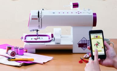 スマートフォンやタブレットの操作で、最大102×102mmのサイズの刺しゅうができる小型刺しゅう専用ミシンです。