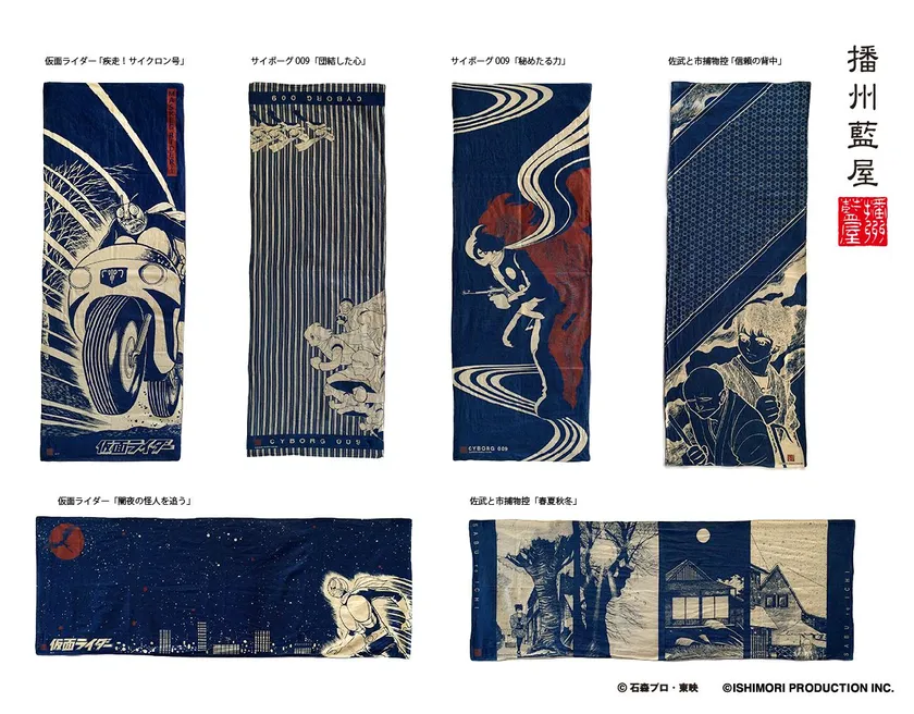 「仮面ライダー」や「サイボーグ009」が和風ストールに! 兵庫県多可町発の新ブランド「播州藍屋」、 生誕80周年 石ノ森章太郎コラボ商品を限定発売