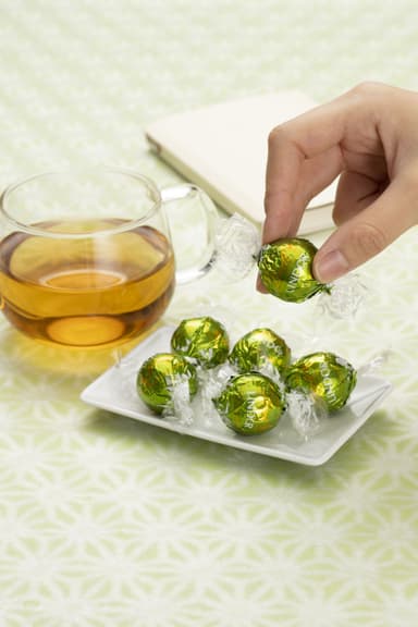 鮮やかな抹茶グリーンの包みがひときわ目を引く「リンドール 抹茶」は、リンツの店舗の「ピック&ミックス」でお求めいただけます。