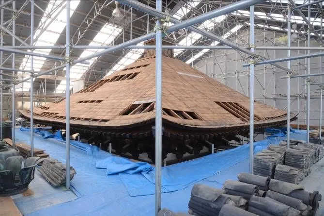 国宝・当麻寺西塔の屋根葺き替え工事