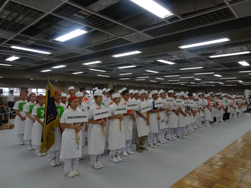 「全国高校生そば打ち選手権大会」は、日本の伝統食「そば」の食文化継承と手打ちそばの更なる発展・普及を目指し、全国の高校生がそば粉8割・割り粉2割の「二八そば」1kgを制限時間内にいかに仕上げるかを競う競技となっております。