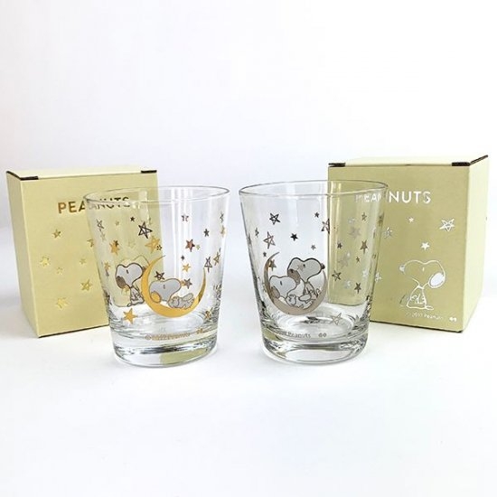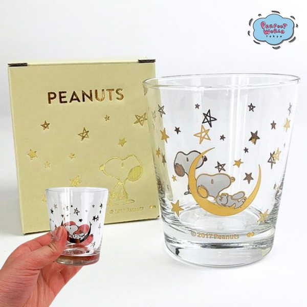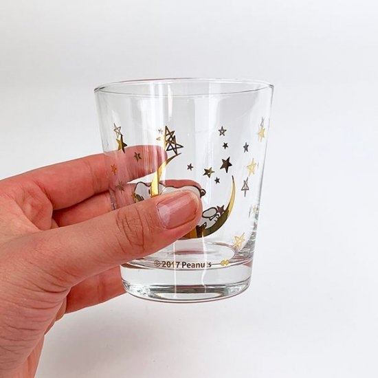 星や月のデザインとともに、スヌーピーが描かれている幻想的なグラスです。