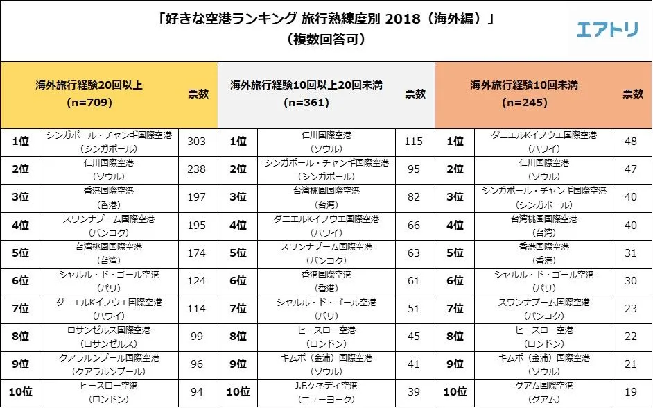 ~エアトリが「好きな空港ランキング2018(海外編)」を発表~