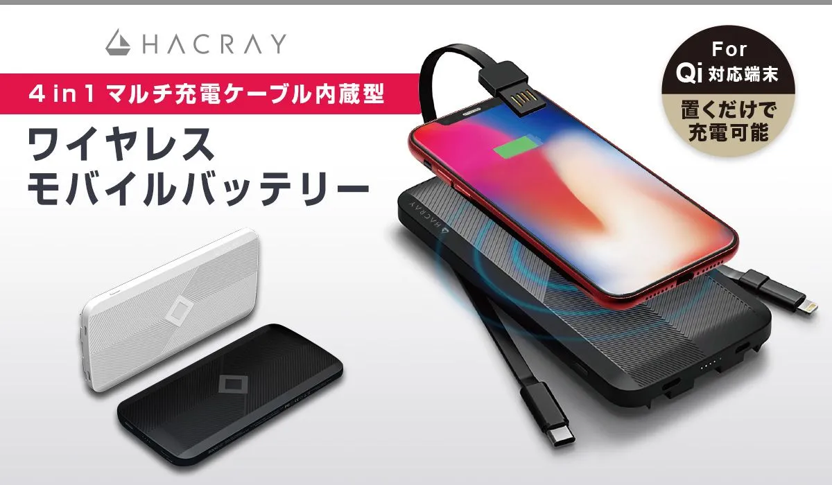 モバイル周辺アクセサリー専門の株式会社ロア・インターナショナル(所在地:東京都新宿区、代表取締役社長:Ally Won)は、HACRAY(ハクライ)から「4in1マルチ充電ケーブル内蔵型 ワイヤレスモバイルバッテリー」の発売を開始しました。