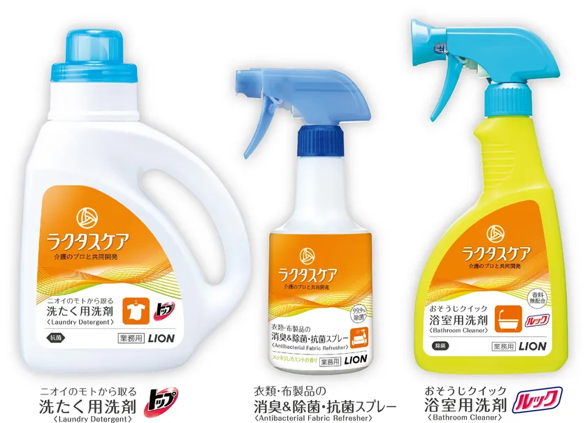 ライオン株式会社(代表取締役社長・濱 逸夫)は、介護に関する様々な負担・不安を軽減する新ブランド『ラクタスケア』を2018年8月28日(火)より立ち上げます。第一弾の商品として、介護施設向けに開発した衣料用液体洗剤、消臭スプレー、浴室用洗剤の3つの新製品を発売します。