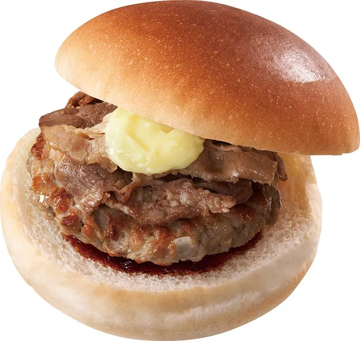 牛カルビとパティが一緒になったボリューム満点のハンバーガーです。牛角特製旨辛ダレを使用し味にアクセントをつけた、辛みがクセになる一品です。