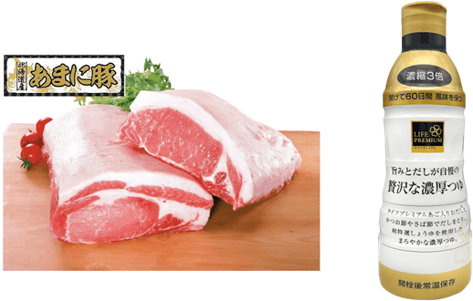 中の餡・具材には、ライフオリジナルの「北海道産あまに豚」・「ライフプレミアム 旨みとだしが自慢の贅沢な濃厚つゆ」を使用しています。