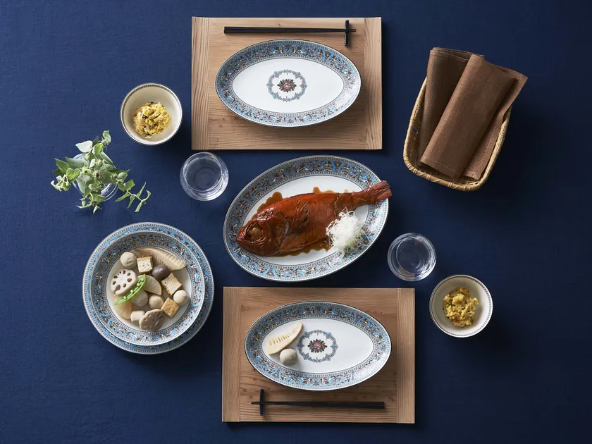 重厚感溢れるクラシックな佇まいはそのままに、日々の使い勝手の良さを追求した5つのシェイプが新たに加わりました。現代の日本の食卓に合わせた無駄のないコンパクトなサイズ。汁気の多いお料理にも万能な適度な深み。縁まで広く使えるリムのないシェイプ。オーセンティックな絵柄に、電子レンジが使えるなど現代のニーズを取り込んだ新作は、盛り付けるお料理のバリエーションを広げ、毎日の食卓からパーティーシーンまで、カジュアルにもフォーマルにも幅広くお使いいただけます。同じデザインでテーブルをコーディネートしていただくのはもちろん、和食器をはじめとする異素材の食器と組み合わせるのもおすすめです。
