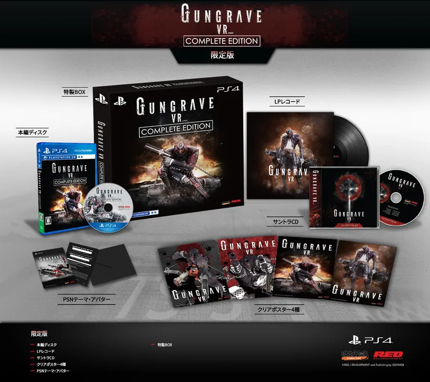 『GUNGRAVE VR COMPLETE EDITION』の発売を記念して、数量限定にて限定版と初回版の2種類のパッケージを制作いたしました。各々の構成は以下の通りです。