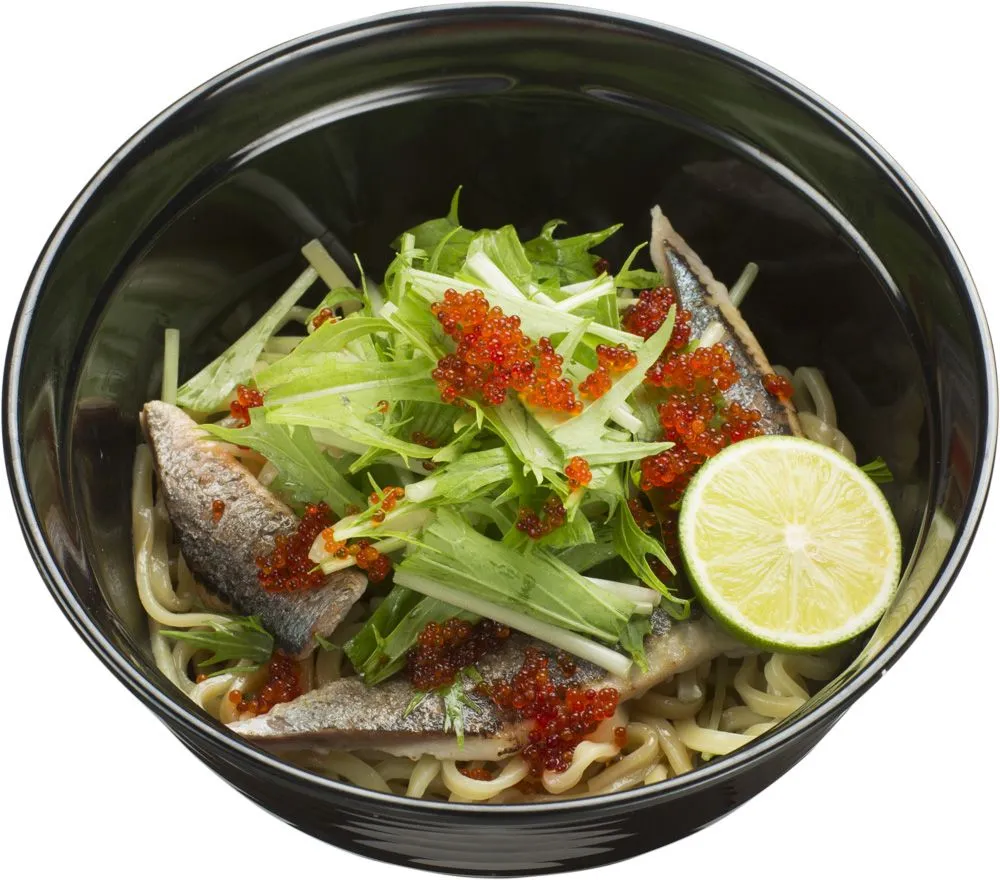 今回登場する『さんまのペペロン風まぜそば』は、秋の味覚である“さんま”を主役として使用しながら、トッピングに水菜、とび子、すだちを盛り付け、味・食感・香りともにバランス良く仕上げた逸品です。今の時期が旬で、上質な脂と旨味が自慢のさんまには、店内で丁寧に炙るひと手間を加えているため、より一層さんまの風味や香ばしさを味わっていただけます。また、トッピングは様々な食感をお楽しみいただけるよう水菜、とび子を使用しているほか、搾ることで爽やかな味と香りが楽しめるすだちをアクセントとして加えています。さらに、ソースには香り高いガーリックオイルを使うことによって、まぜそばでありながら洋の風味も際立つ、“和風ペペロンチーノ”のような味わいが特徴の商品に仕上がりました。
