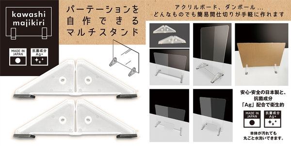 1/19(火)発売開始!!アクリルパーテーション用のオ リジナルスタンド(カワシマジキリAg+スタンド) アクリル板を準備して、手軽に簡単にアクリルパーテションを設置してコロナ感染症対策!