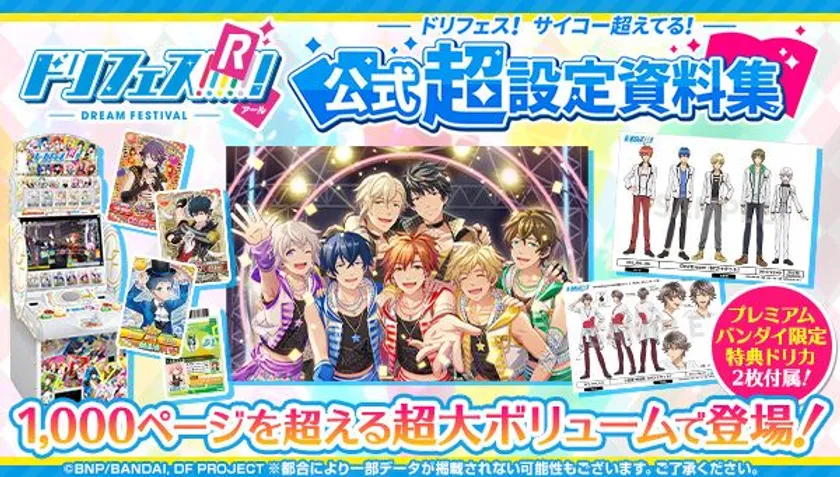 バンダイ公式ショッピングサイト「プレミアムバンダイ」( http://p-bn.jp/su/12uur4n9enr/ )では、5次元アイドル応援プロジェクト「ドリフェス!」「ドリフェス!R」の“アプリ” “データカードダス” “アニメ”を網羅した1,000ページ超の設定資料集『ドリフェス!サイコー超えてる!公式超設定資料集』(17,820円 税込/送料・手数料別途)の予約受付を、2018年8月24日(金)11時に開始いたします。(発売元:株式会社バンダイナムコピクチャーズ)