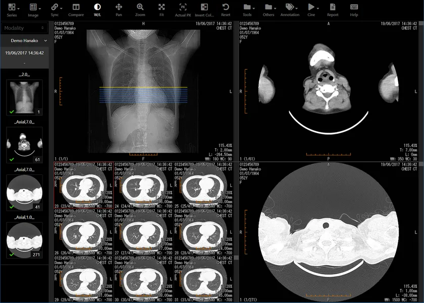 SonicDICOM PACSは、検査装置で発生した画像を受信・管理する「DICOM(*1)サーバー」と、それらの画像を参照するWebベースの「DICOMビューア」の2つの機能を合わせ持ったソフトウェア(PACS *2)です。誰でも簡単に操作できるシンプルなUIと高速な動作が特長です。2013年のリリース以来、世界200か国以上で利用されています。