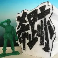 作家が作ったけん玉を成功させると文字の立体「奇跡」が起き上がり、作品と写真撮影することができます。