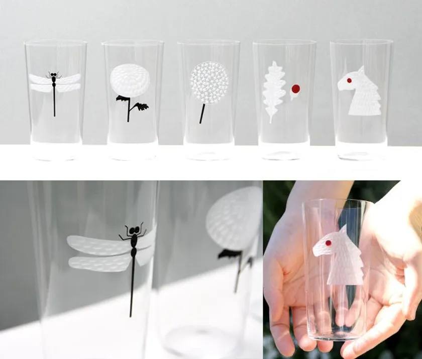 うすはりグラスに江戸切子の伝統技法「花切子」を用いてモチーフを描き、漆で鮮やかに絵付けを施した現代の江戸切子。新作は、前回に続き、UMEBOSIらしい“赤いマル”を用いた「木の葉と実」や「馬」の絵柄の他、繊細な黒漆のラインの「トンボ」、花びらの集合が美しい「菊」、小さな十字のカットが可愛らしい「タンポポの綿毛」など、新しい展開へ広がったデザイン。第1弾の「ウサギ」「サクランボ」モチーフとの組み合わせも楽しめる、計7種類がWISE・WISE tools店頭に並びます。