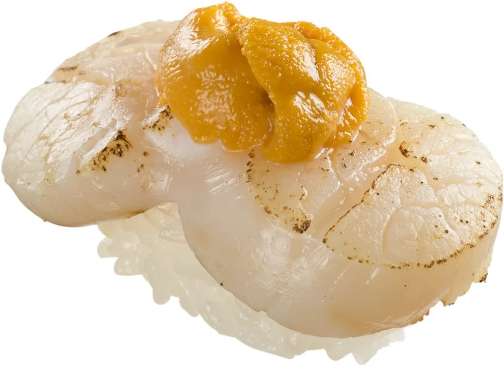 ■商品概要:炙った帆立に濃厚なうにの味わいが絶妙な組み合わせです。食べ応えのある逸品です。